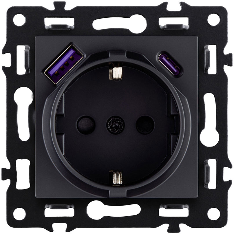Розетка USB type-C + type-A, 3.0А 65Вт Asthetik, USB type-C 5V, USB type-A 5V, двойная