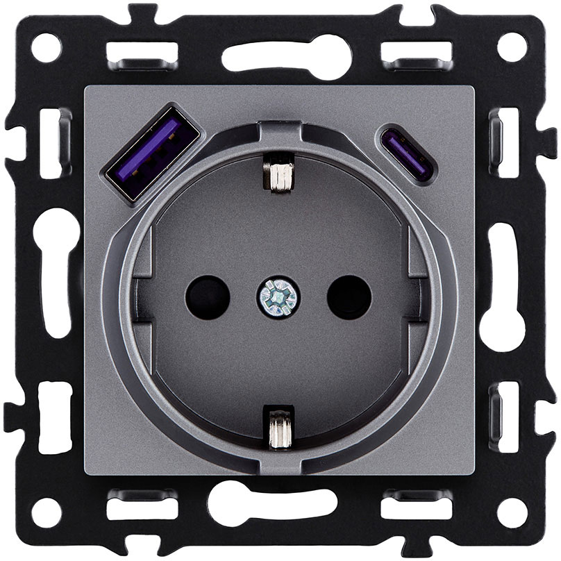 Розетка USB type-C + type-A, 3.0А 65Вт Asthetik, USB type-C 5V, USB type-A 5V, двойная