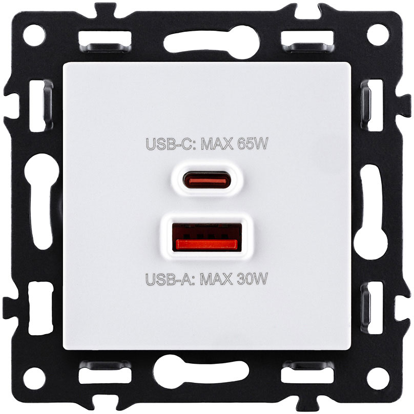 Розетка USB type-C + type-A, 3.0А 65Вт Asthetik, USB type-C 5V, USB type-A 5V, двойная
