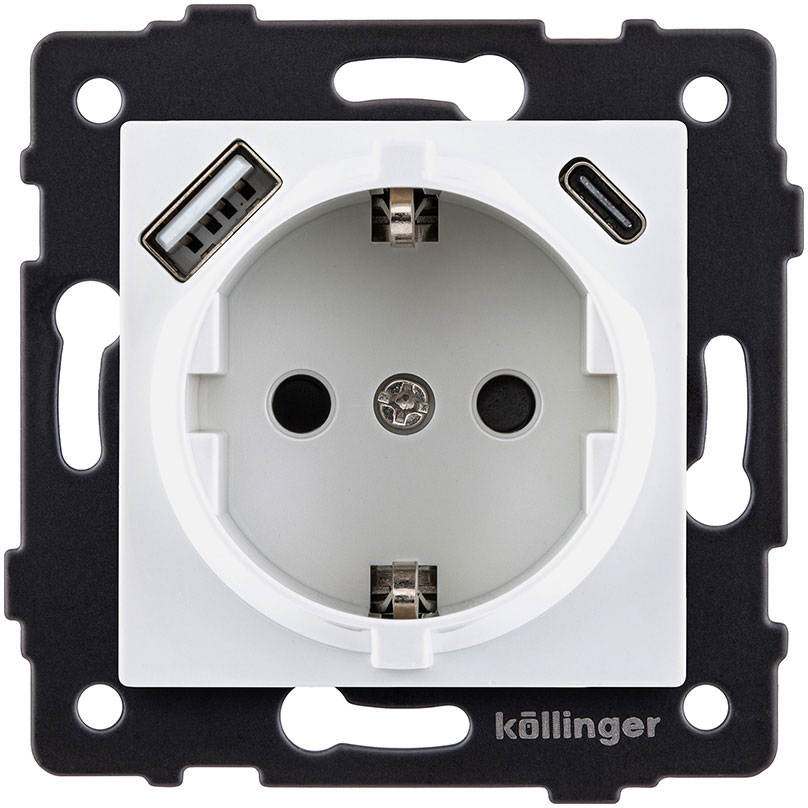Розетка USB A+C 2.4А с электрической розеткой Aspekt, Eleganz, Reflex, USB type-C 5V, USB type-A 5V, двойная