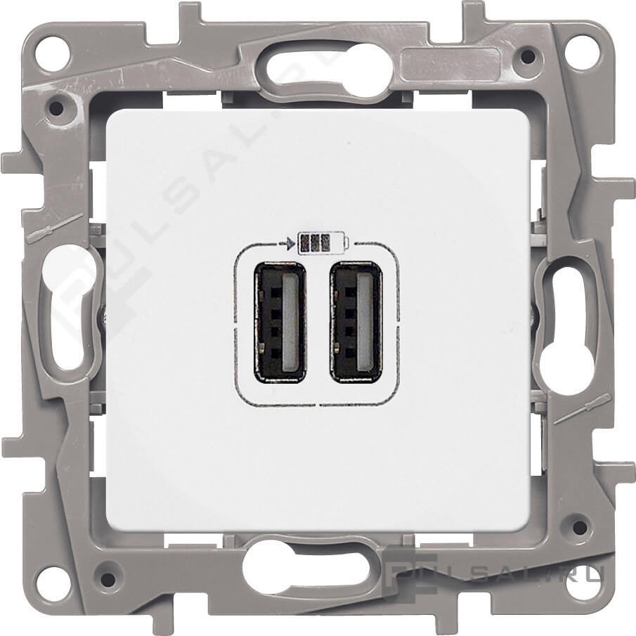 Розетка USB, 2.4А Etika, USB type-A 5V, двойная, цвет - белый