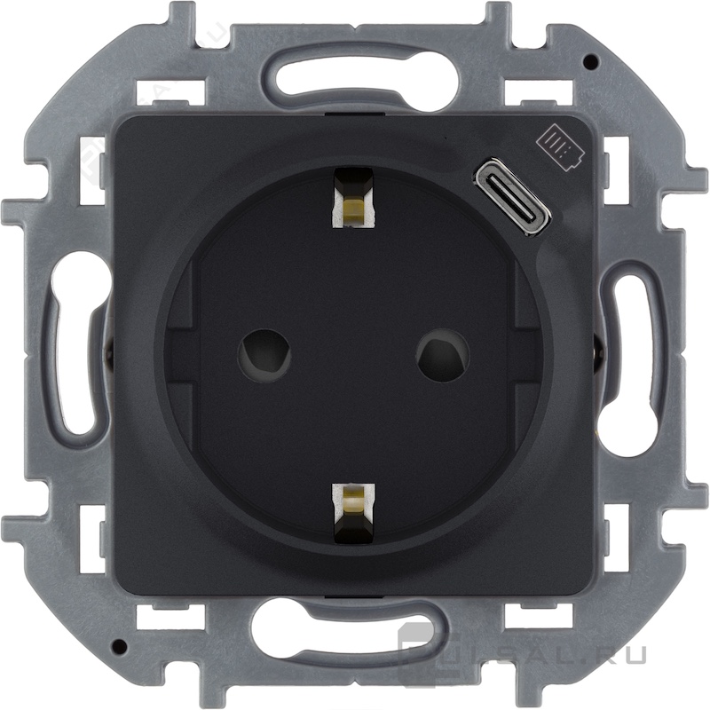 Розетка компьютерная RJ45 Cat.5e (UTP) Inspiria, одинарная, цвет - антрацит