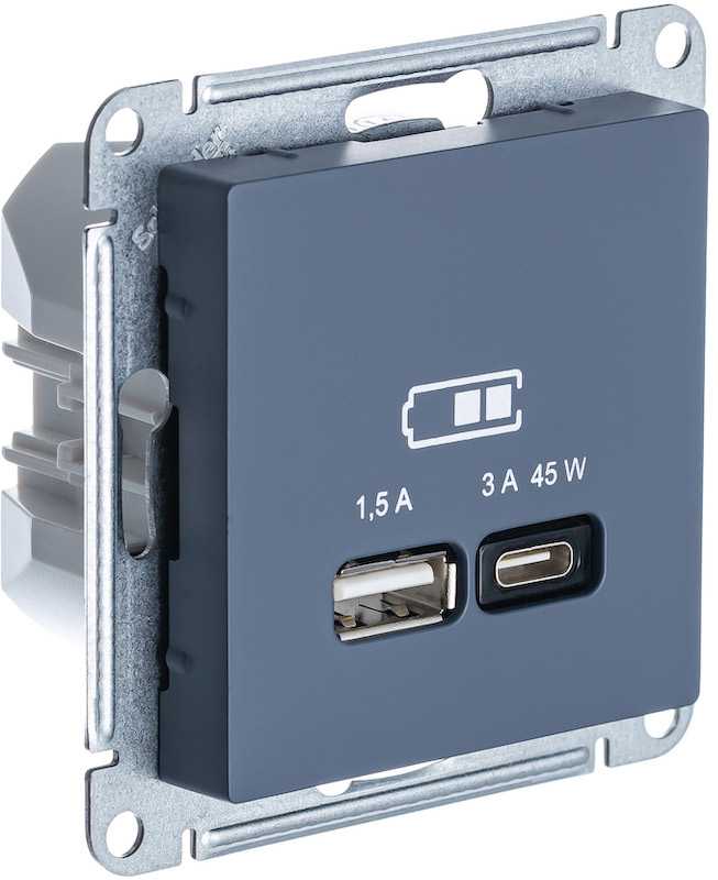 Розетка компьютерная RJ45 Cat.6a (FTP) Atlas Design Antique, AtlasDesign Air, Atlas Design, одинарная, цвет - грифель