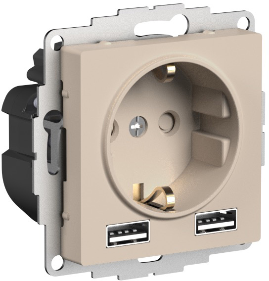 Розетка USB, 2.4А с электрической розеткой Atlas Design Antique, AtlasDesign Air, Atlas Design, USB type-A 5V, Электр. с USB, двойная, цвет - песочный