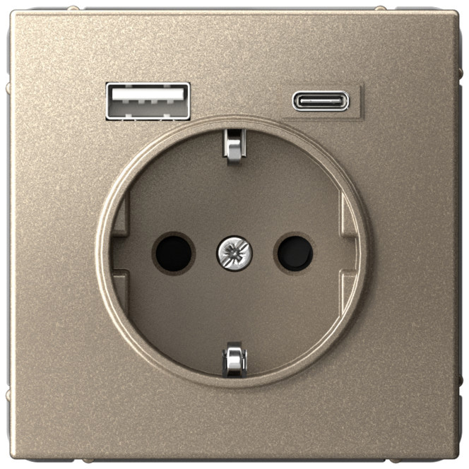 Розетка (безвинтовые клеммы) ArtGallery, ArtGallery Pure, со шторками, с заземлением, одинарная, безвинтовые клеммы, цвет - шампань
