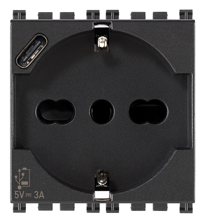 Розетка евро-американского стандарта Arke, со шторками, с заземлением, одинарная, винтовые клеммы, цвет - антрацит серый