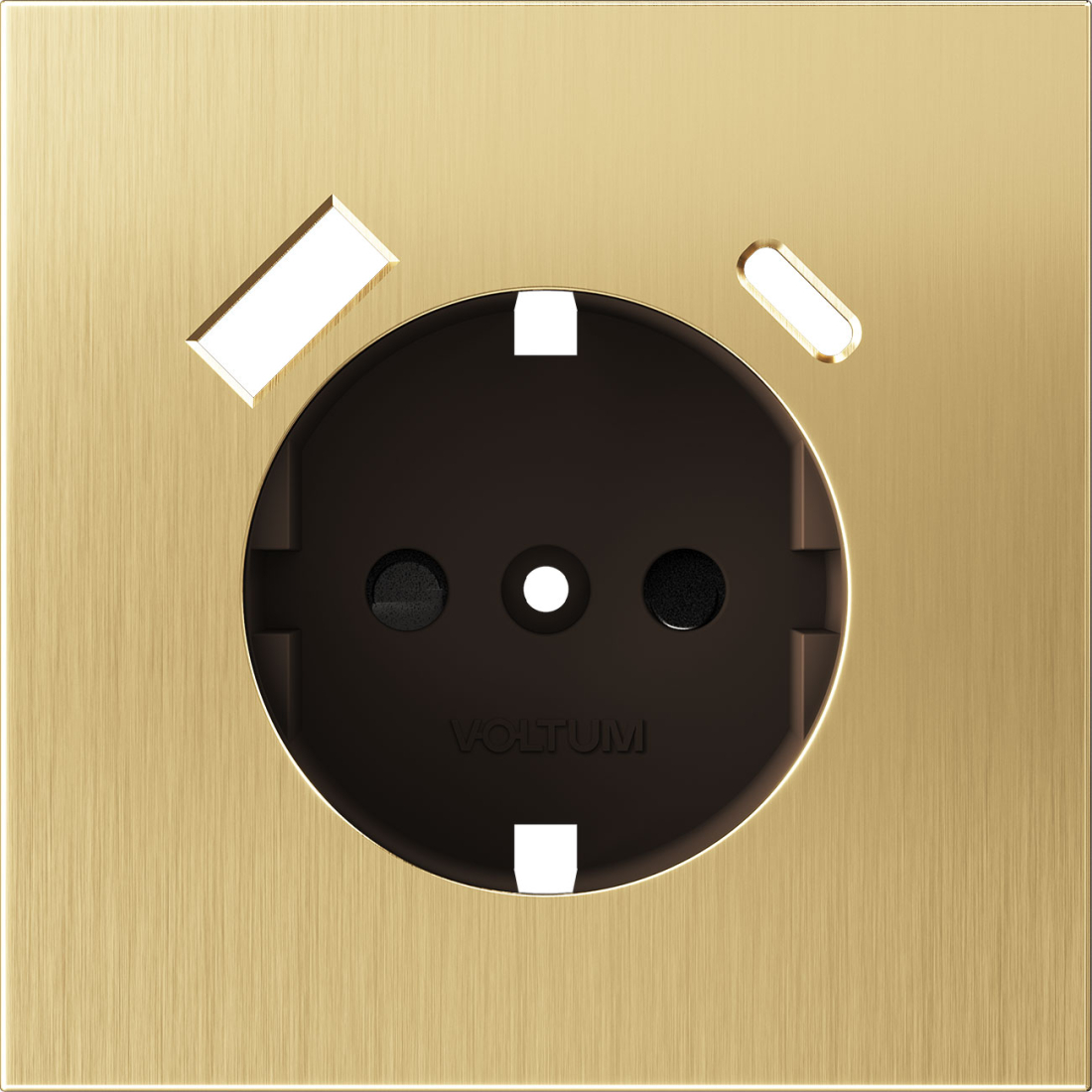 Накладка электрической розетки с USB-зарядкой type A+C S70 Metal, USB type-C 5V, USB type-A 5V, Электр. с USB, двойная, цвет - латунь металл