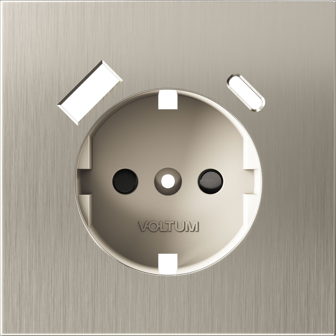 Накладка электрической розетки с USB-зарядкой type A+C S70 Metal, USB type-C 5V, USB type-A 5V, Электр. с USB, двойная, цвет - никель металл