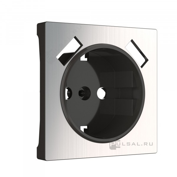 Розетка Alumax, Split, Slab, Senso, Baguette, Acrylic, Platinum, Elite, Snabb, Stream, Flock, Stark, Fiore, Favorit, Diamant, Aluminium, Antik, Metallic, со шторками, с заземлением, одинарная, винтовые клеммы, цвет - глянцевый никель