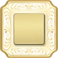 - Выключатели с оригинальными вставками – с узорами, мавританскими мотивами, металлическими орнаментами, в стилистике ар деко, тосканском стиле, с кристаллами и керамическими вставками.