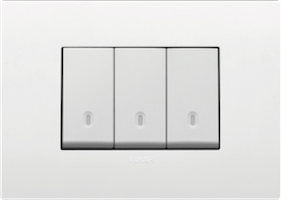 Выключатель Plana, Plana Up, одноклавишный, без подсветки, с возможностью подсветки, цвет - белый